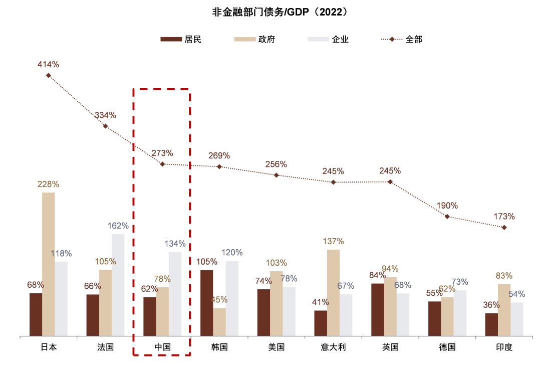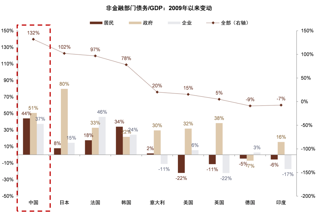 注:中国政府部门杠杆率包括IMF计算的隐性债务,企业部门杠杆率将其中与政府债务重合的部分剔除