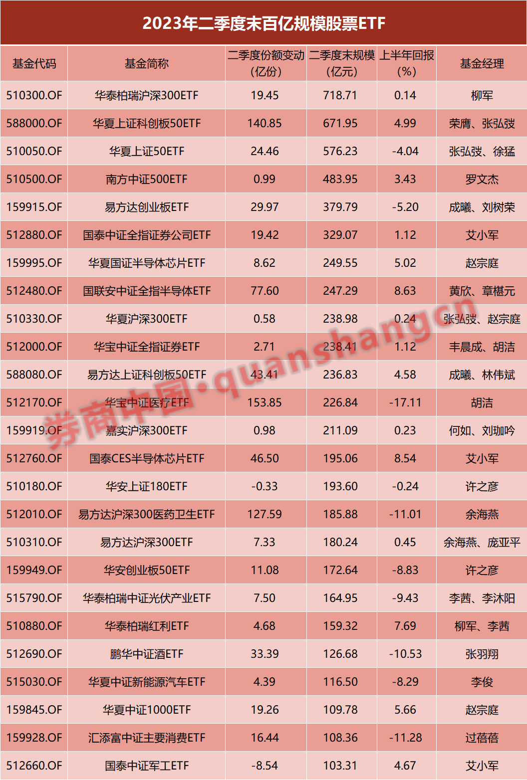 数据显示,今年二季度规模翻倍的股票ETF共有26只,以中小规模股票ETF居多。