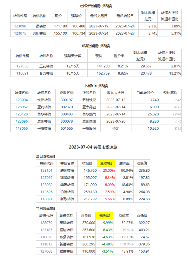 4.思创转债董事会提议下修,如果下修到底,合理价格为103元,略高于当前价格。近期跌破面值的转债分别迎来下修、债务重组等利好消息,一批转债开始悄然走强,可以在控制仓位的前提下关注、参与。