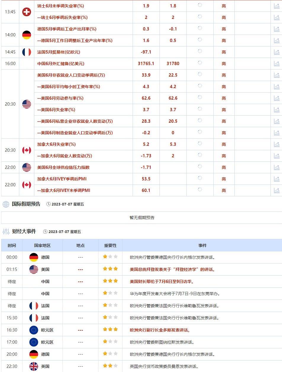 美国ADP全国就业报告显示,6月民间就业岗位猛增,创2022年2月以来最大增幅,美国劳工部表示,上周初请失业金人数仅略有上升。随后,供应管理协会(ISM)的一项调查显示,美国服务业6月增长快于预期,新订单增加,进一步显示在货币政策收紧的情况下,美国经济仍具有韧性。