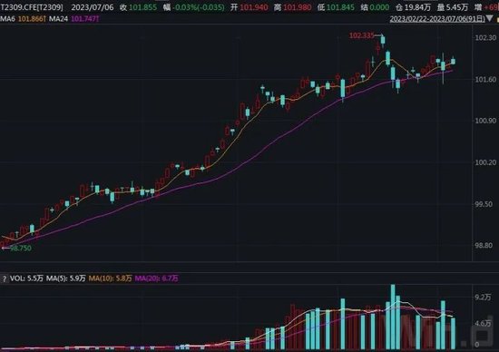 今年国债期货各期一路攀升,不断创新高。Wind行情显示,以10年期国债期货主力合约(T2309)来看,今年以来自1月中旬探底后走出一轮持续上涨大牛市,途中几乎没有像样的回调,一路上攻到6月14日高位才开启短暂回调,6月下旬开始再度震荡走高,后期或能再创新高,值得期待。