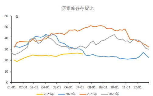 库存方面,截至 6 月 30 日当周,沥青库存存货比较 6 月 23 日当周环比下降 0.4 个百分点至 25.7%,目前仍处于历史低位。