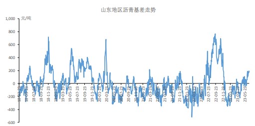 基差方面,山东地区主流市场价维持在 3710 元/吨,沥青 10 合约基差走弱至 161 元/吨,处于中性水平。