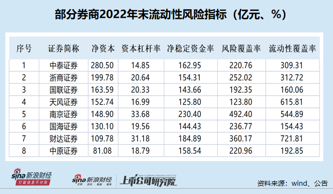 此外,与7家(华鑫股份未公布数据)进行定增的券商相比,中泰证券除资本杠杆率这项指标外,其他几项风控指标并不是最差,有的甚至排名第一,公司却还要将大部分募资用来偿债。如公司(母公司报表) 2022年的净资本在8家公司中排第一;净稳定资金率排第三;风险覆盖率、流动性覆盖率排第五。并且,中泰证券的几项风控指标离预警线还相差甚远。