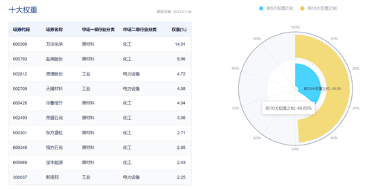 而从标的指数情况看,化工ETF(516020)成份股基本上覆盖化工各个细分领域,其中近5成仓位集中于大市值龙头股,包括万华化学、盐湖股份、恩捷股份、华鲁恒升、天赐材料、荣盛石化等,分享强者恒强投资机遇;其余5成仓位兼顾布局磷肥及磷化工、氟化工、氮肥、煤化工、钛白粉等细分领域龙头股。化工周期筑底阶段,通过化工ETF(516020)或可全面把握化工板块投资机会。