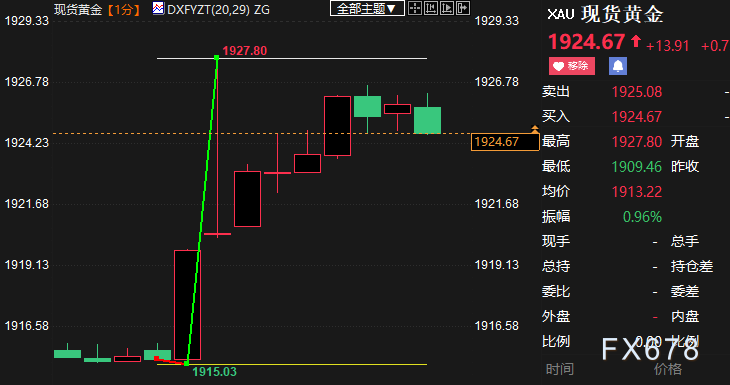 汇通财经APP讯——北京时间周五(7月7日)20:30,美国劳工部发布的6月非农就业报告不及预期,尽管失业率走低且薪资意外走强。截至发稿,现货黄金跳涨逾12美元至1927.80美元/盎司。