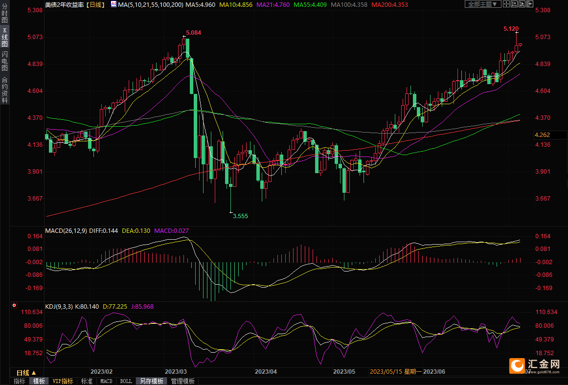 通常与加息预期同步的两年期美国国债收益率周四盘中升至5.120%,为2007年6月以来最高,日内上升5.1个基点,报5.002%。