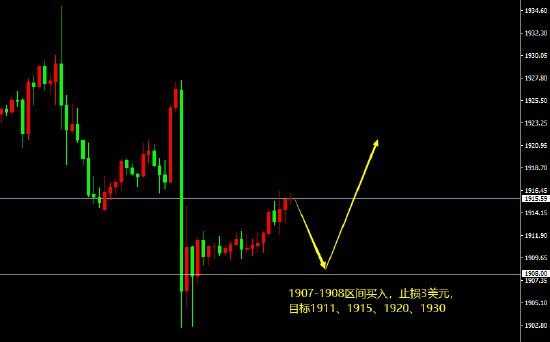 1907-1908区间买入,止损3美元,目标1911、1915、1920、1930。