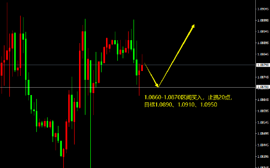 1.0860-1.0870区间买入,止损20点,目标1.0890、1.0910、1.0950。
