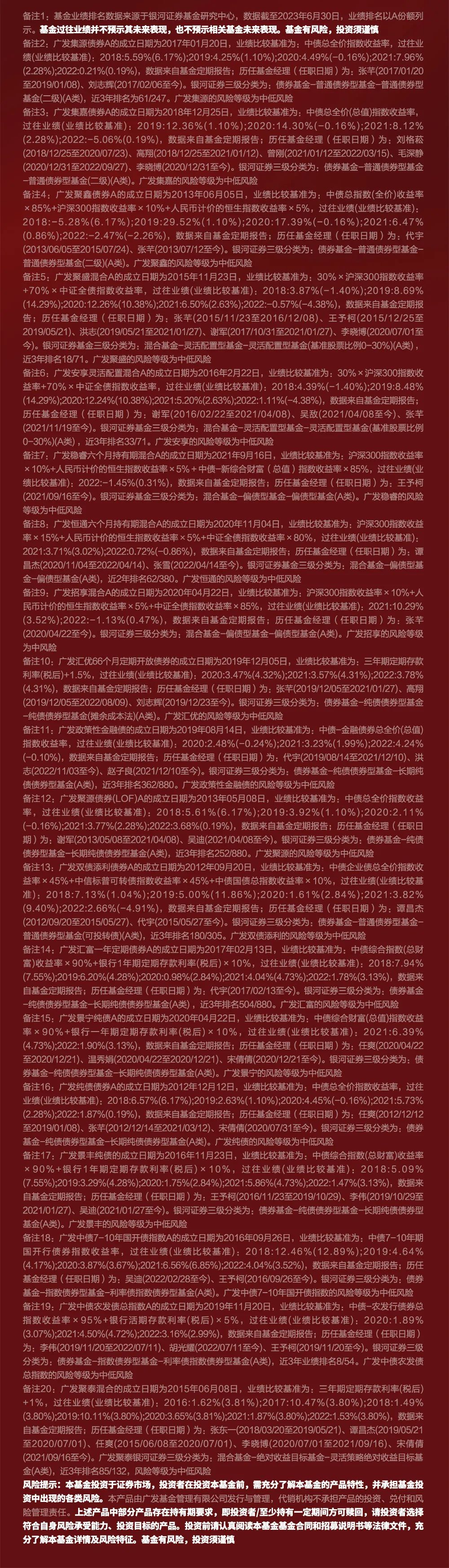 张芊有着二十年的固收投研经验和超过10年的公募投资经历,经历过股债多轮牛熊周期考验,对于风险控制的重要性有着深刻的认知。除了个人的投研经验,广发基金的信评系统也是张芊的重要参考因素。她的理念是不以风险博收益,追求风险调整后的最优回报,这种“先考虑风险,稳中求进”的投资理念是张芊能穿越牛熊的重要原因。