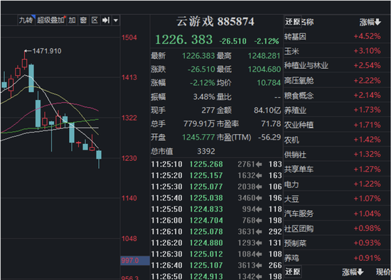 AI类题材表现低迷,MLOps概念、算力租赁、云游戏等板块跌幅靠前。云游戏再度大跌,三七互娱(维权)早盘一度跌超8%,收盘跌近3%,另外优刻得-W、汤姆猫等多股跌超3%。