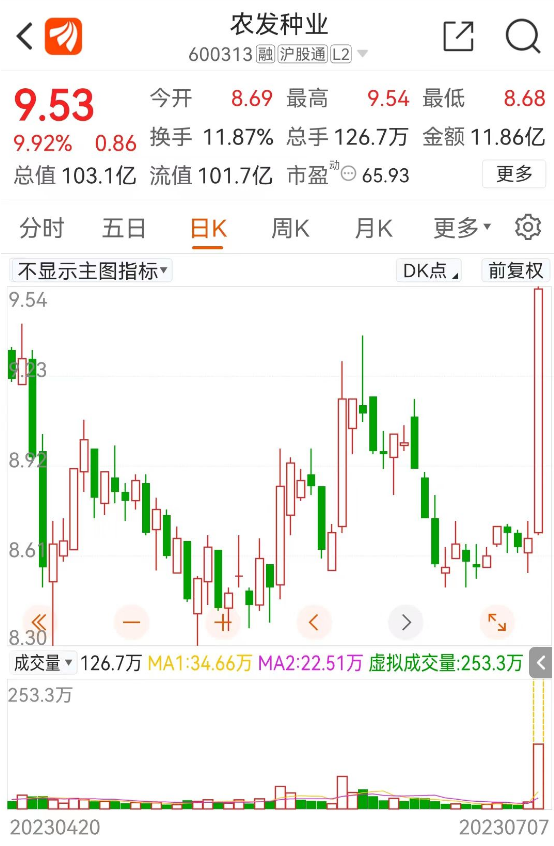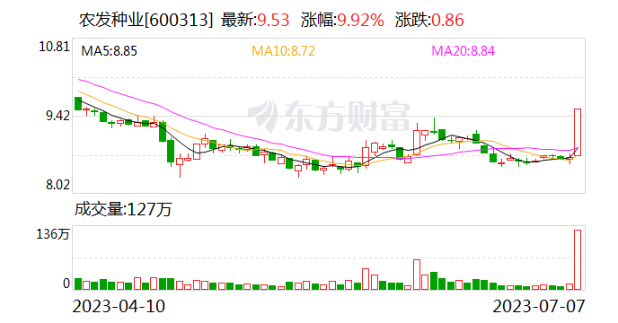 农发种业逼近涨停