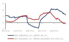 紧货币→紧信用传导偏缓慢。经济韧性的另一个观察维度是紧货币向紧信用的传导。从美国的货币向信用传导情况观察,虽然回落斜率陡峭,但美国信贷扩张仍处于增速放缓阶段,且绝对值处于历史高位,距离跌入紧缩区间仍有距离。粗略评估预计信用回落至紧缩也仍需3-6个月。