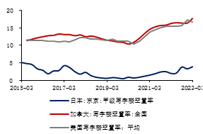 数据来源:iFinD,金瑞期货图表31 美国、加拿大等商业地产空置率走高
