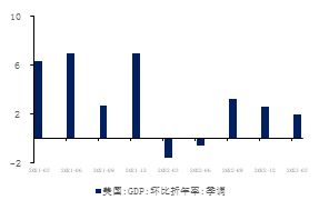 高利率环境对流动性抑制开始显现,美国经济韧性趋势向下。随着联储政策利率的持续提升,当前美国实际利率已经超过中性利率水平而处在限制性水平。前文已说明美国紧货币向紧信用的传导逐步兑现,这里不再赘述。目前在高利率的压制下美国流动性环境已经切实掉头向下,综合经济增速(GDP)也表现出边际放缓。