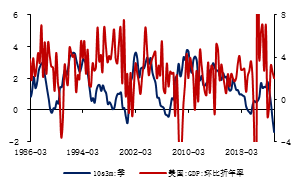 数据来源:iFinD,金瑞期货图表29 期限倒挂后经济往往陷入衰退
