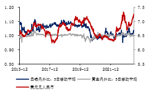 数据来源:iFinD,金瑞期货图表4 内外比价受汇率影响波动