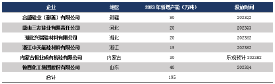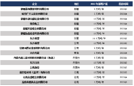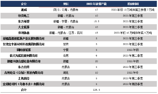 表格 4 多晶硅2023年下半年新增产能投放情况
