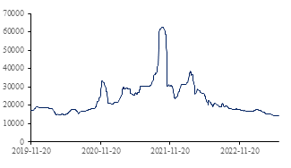 第二阶段,2023年3月至5月底,工业硅价格下跌速度加快,从17150元/吨跌至13550元/吨,跌幅达21%。这阶段一方面是上游走出枯水期,生产成本下降,月度产量逐步扩大,库存格局居高不下,另一方面是下游传统“金三银四”旺季订单数量不及预期,价格持续走低。