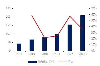 数据来源:iFinD,金瑞期货图表 22 国内组件出口及同比(GW,%)