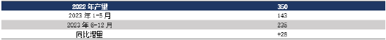 近期汽车消费刺激政策接连发力,推动新能源汽车市场下沉,促进消费潜力释放,叠加车市即将迎来下半年消费旺季,后续新能源汽车销量有望继续走高。新能源汽车产业链呈现逐季度改善,2023年1-5月累计销量294万辆,同比增长46.8%。5月我国新能源汽车产销量分别为71.3万辆和71.7万辆,同比分别增长53%和60.2%,环比增加11.4%和12.7%。预计23年中国新能源车销量达到870万辆。我们维持年初的报告判断,认为下半年6-12月,新能源车产量570辆,耗硅9.65万吨,同比增速10.5%。传统车6-12月产量702万辆,耗硅5.05万吨。下半年6-12月汽车行业,总耗硅14.7万吨,增速-16%。
