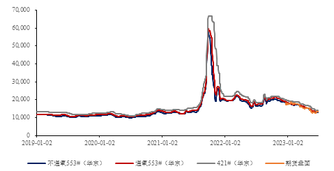 数据来源:SMM,金瑞期货图表 3 553#与421#价差小于2000元/吨