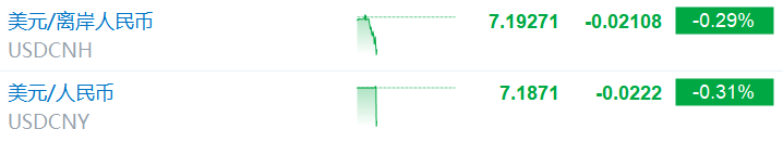格隆汇7月12日丨在岸、离岸人民币双双走强,离岸人民币兑美元现报7.1927、在岸人民币兑美元报7.1871,日内均涨逾200点。