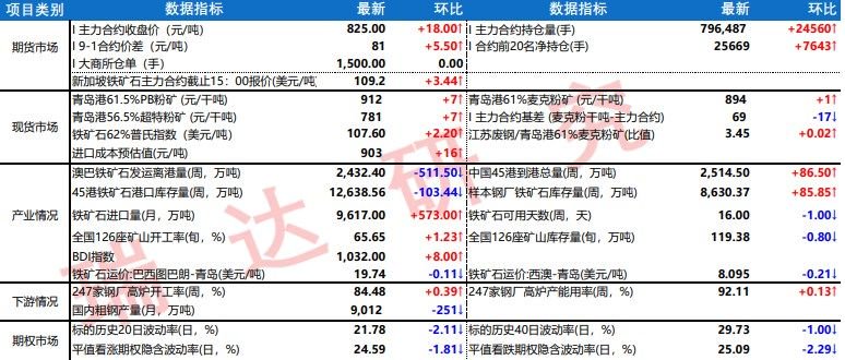 周三I2309合约增仓反弹,进口铁矿石现货报价上调。