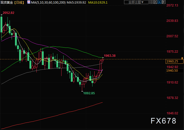 美元指数跌至一年多以来最低,令黄金对海外买家来说价格降低,指标美国公债收益率下跌,降低了持有不孳息黄金的机会成本。BlueLineFutures首席市场策略师PhillipStreible表示:“数据公布后,黄金市场强劲反弹。如果黄金能再获提振,将有机会上探2000美元大关,但我们正面临许多不同的阻力点。”