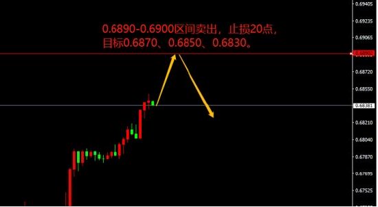 0.6890-0.6900区间卖出,止损20点,目标0.6870、0.6850、0.6830。