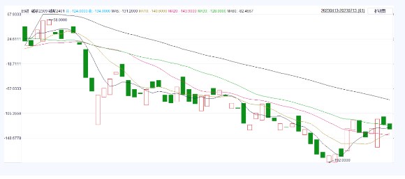 23/24榨季巴西上量速度加快,7月巴西进入压榨高峰期,国际市场糖供应压力偏大。近期美糖大幅下跌,带动国内期货糖价震荡下行。远期合约受天气炒作可能的原因,走势相对抗跌,预计二者差价有继续下行的可能。