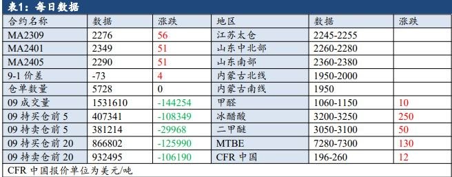 前期海外天然气价格上涨引发供应收缩预期,周内内地意外检修及华东重启预期再起带动改善预期,成本端煤价在高温日耗支撑下企稳反弹,煤化工表现亮眼,MA 减仓上行。