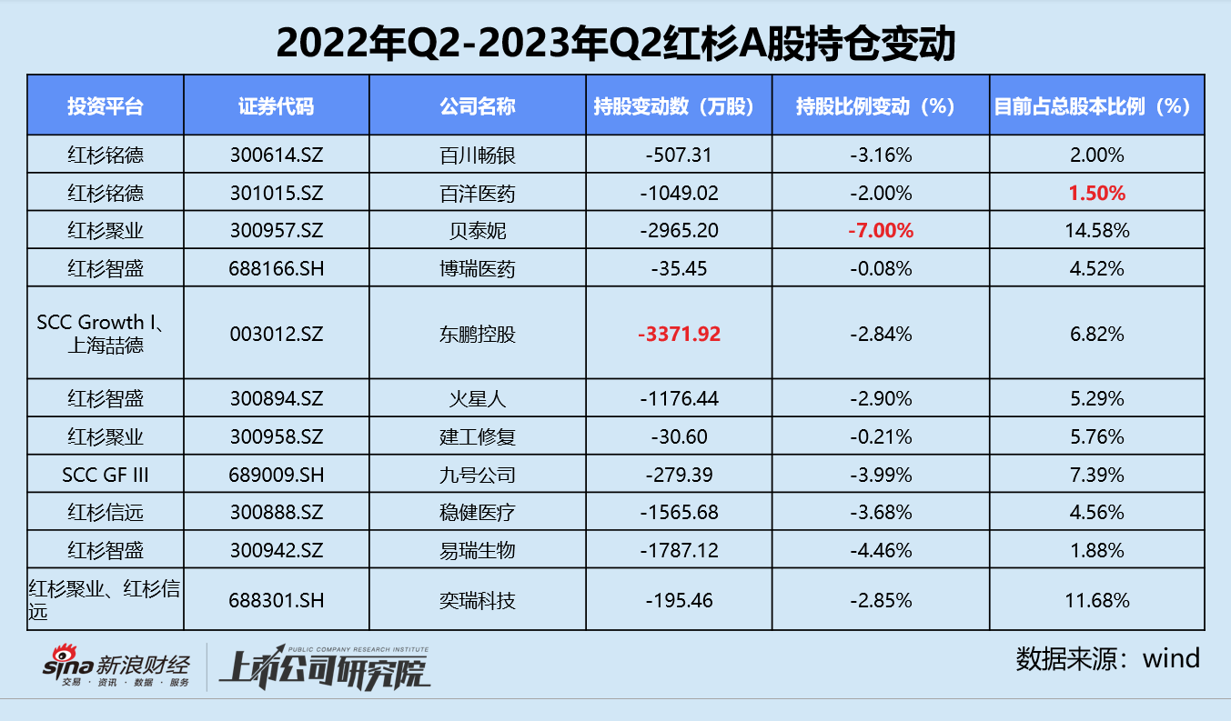 除了对上述企业减持动作明显,报告期内红杉还对博瑞医药(维权)、建工修复、奕瑞科技分别小幅减持35.45万股、30.60万股和195.46万股;累计抛售火星人1176.44万股,占公司总股本比例减少近2个百分点;作为前十大股东之一,红杉在百川畅银、百洋医药和稳健医疗的持股比例都降至5%以下。